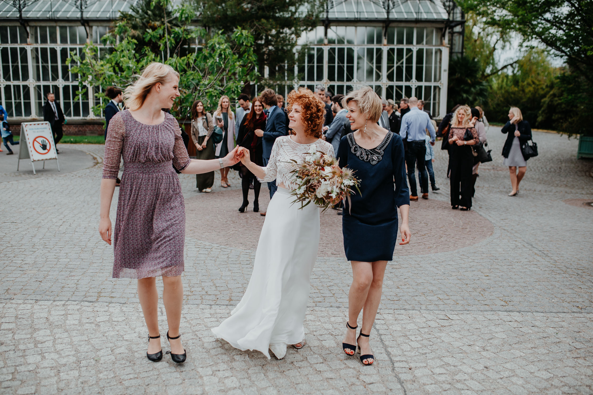 Wir durften dort eine standesamtliche Trauung begleiten – vom Ankommen der Gäste bis zu den ersten Momenten nach dem „Ja“. Im Tropenhaus entstehen ganz besondere Bilder: Die Kulisse ist lebendig, die Farben wirken intensiv und gleichzeitig bleibt alles elegant und ruhig. Während der Zeremonie halten wir nicht nur die offensichtlichen Highlights fest, sondern auch die leisen Augenblicke dazwischen: ein Blick, eine Hand, ein kurzes Lächeln, ein kleines Tränchen. Unser Stil ist dabei immer unaufdringlich – präsent, aber nie im Weg.
